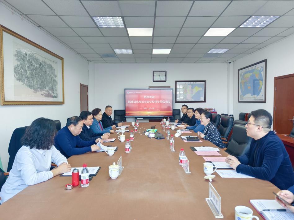 褚景云对我院的接待表示感谢,她在讲话中指出,与山东财经大学共建出国留学优质生源基地,不仅能提升菏泽郓城双成双语实验学校的国际化办学水平,更重要的是能为学生搭建一个安全可靠的留学平台。郭斌表示将积极对接山东财经大学的优质教育资源,全力推动留学项目在菏泽郓城双成双语实验学校落地生根。