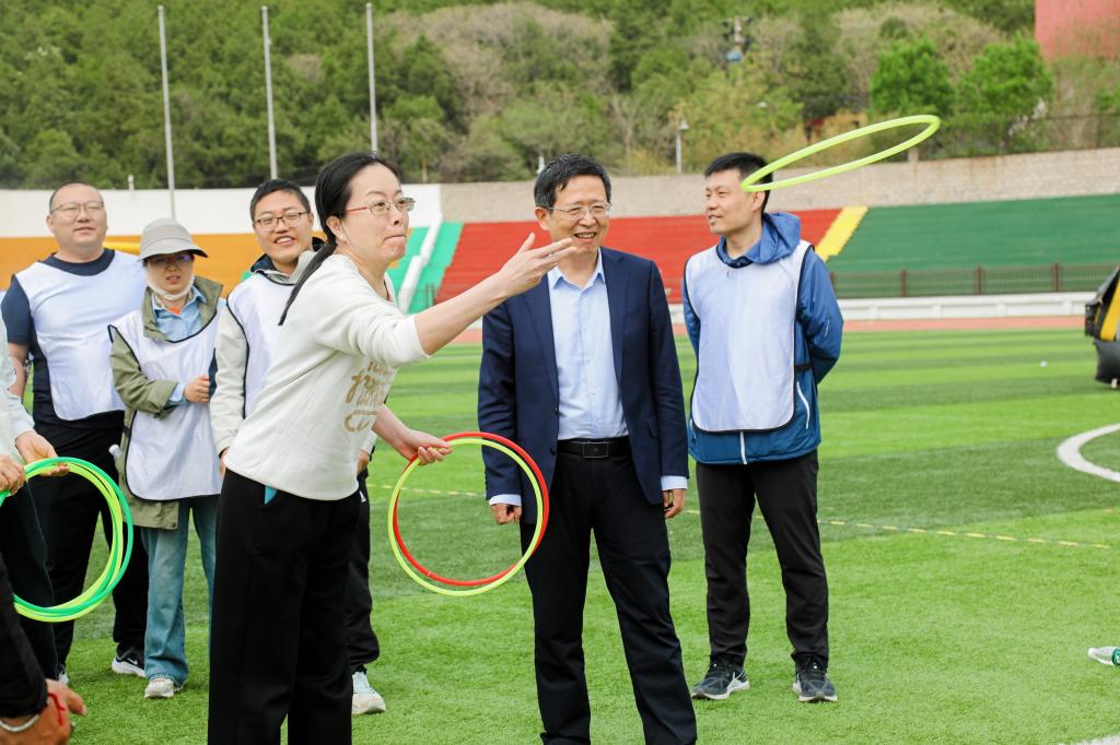本次趣味运动会设置了“一举成名”“超级大闯关”“力拔山河”等7个团体项目。赛场上,老师们也积极参与其中,与同学们并肩作战,共同享受运动的快乐。