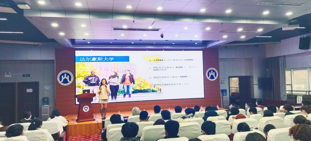 11月13日上午,加拿大达尔豪斯大学中国项目副主任Shannon Peng、英语教师Jennifer MacDonald及语言项目Mingyi Wang到访我院,并为出国留学项目学生做宣讲。