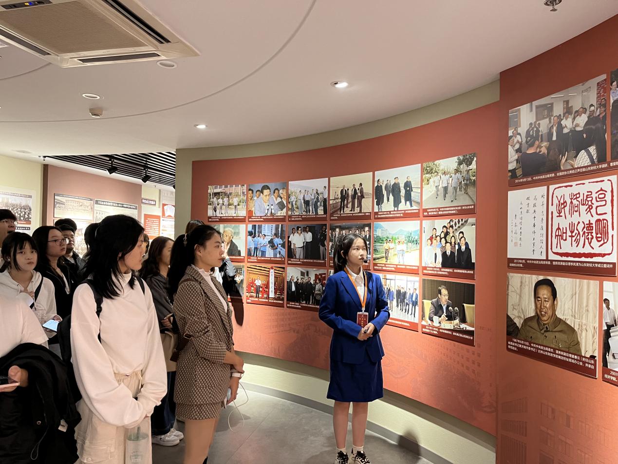 校史馆内,丰富的图文资料与珍贵实物交相辉映,生动展现了学校自创立以来70余载的辉煌历程与卓越贡献。在讲解员细致生动的解说引领下,同学们了解了学校从山东财政经济学院、山东财经学院、山东经济学院、山东财政学院等历史阶段,发展到今天山东财经大学的沿续脉络,深刻体会了学校深厚的文化底蕴、悠久的历史传承和显著的办学成就。