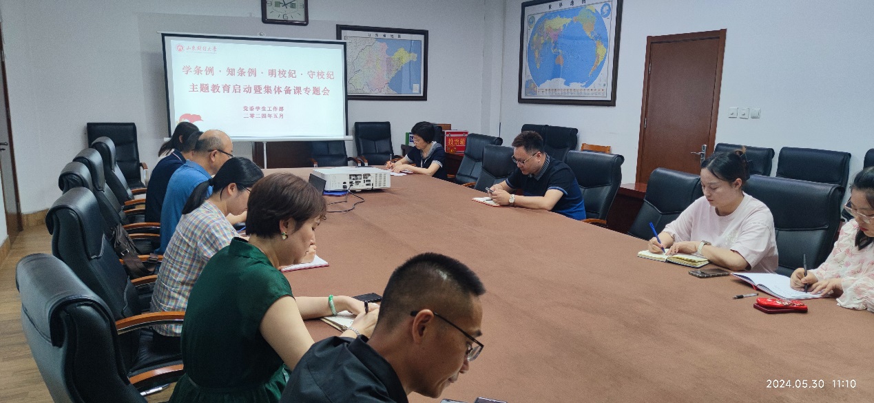 5月29日学院组织出国留学项目全体专兼职辅导员、班主任举行集体备课会,深入学习《山东财经大学学生违纪处分条例》,详细研读相关条例及处理程序,明确重点,划分职责,统筹部署,为下一步工作开展奠定坚实基础。