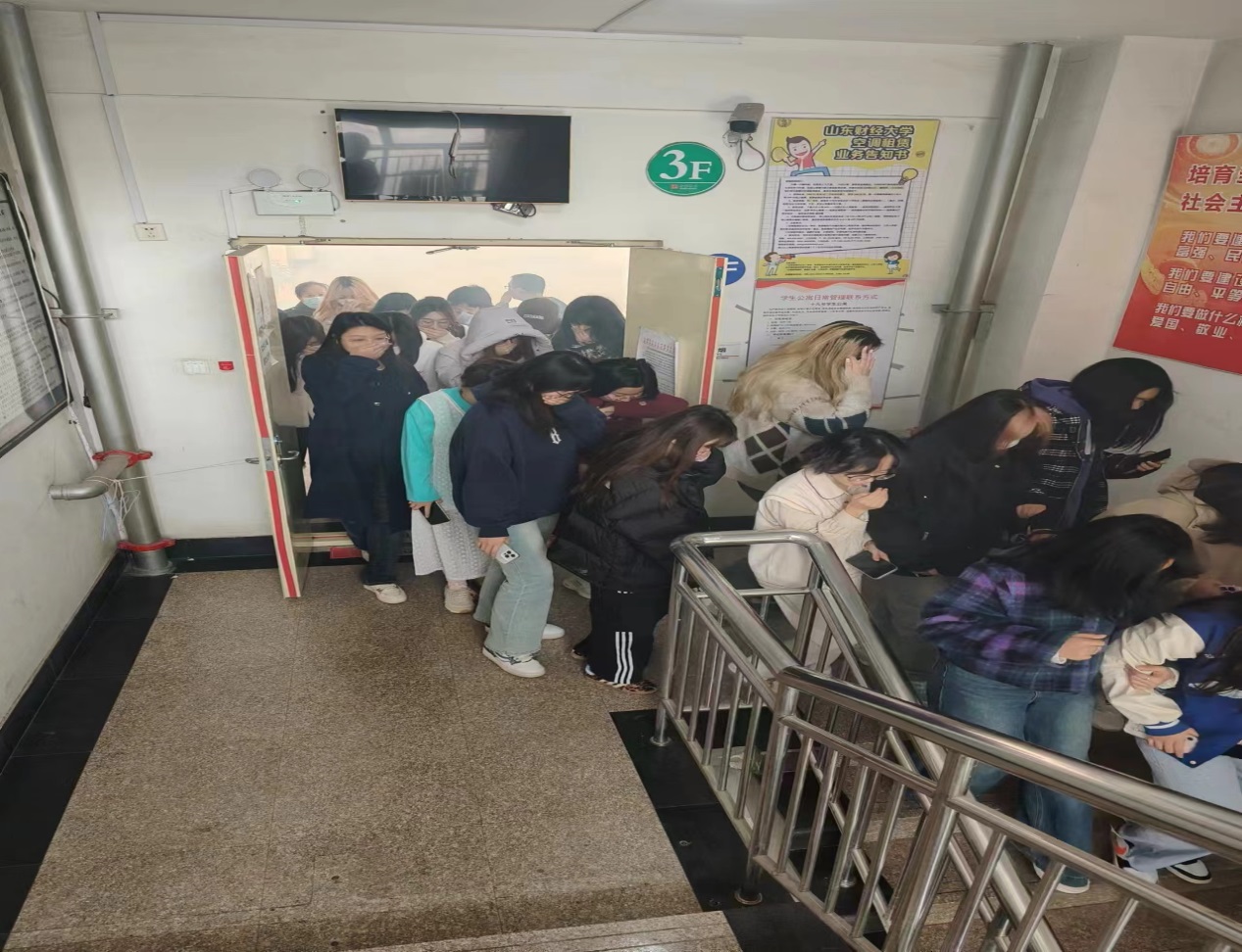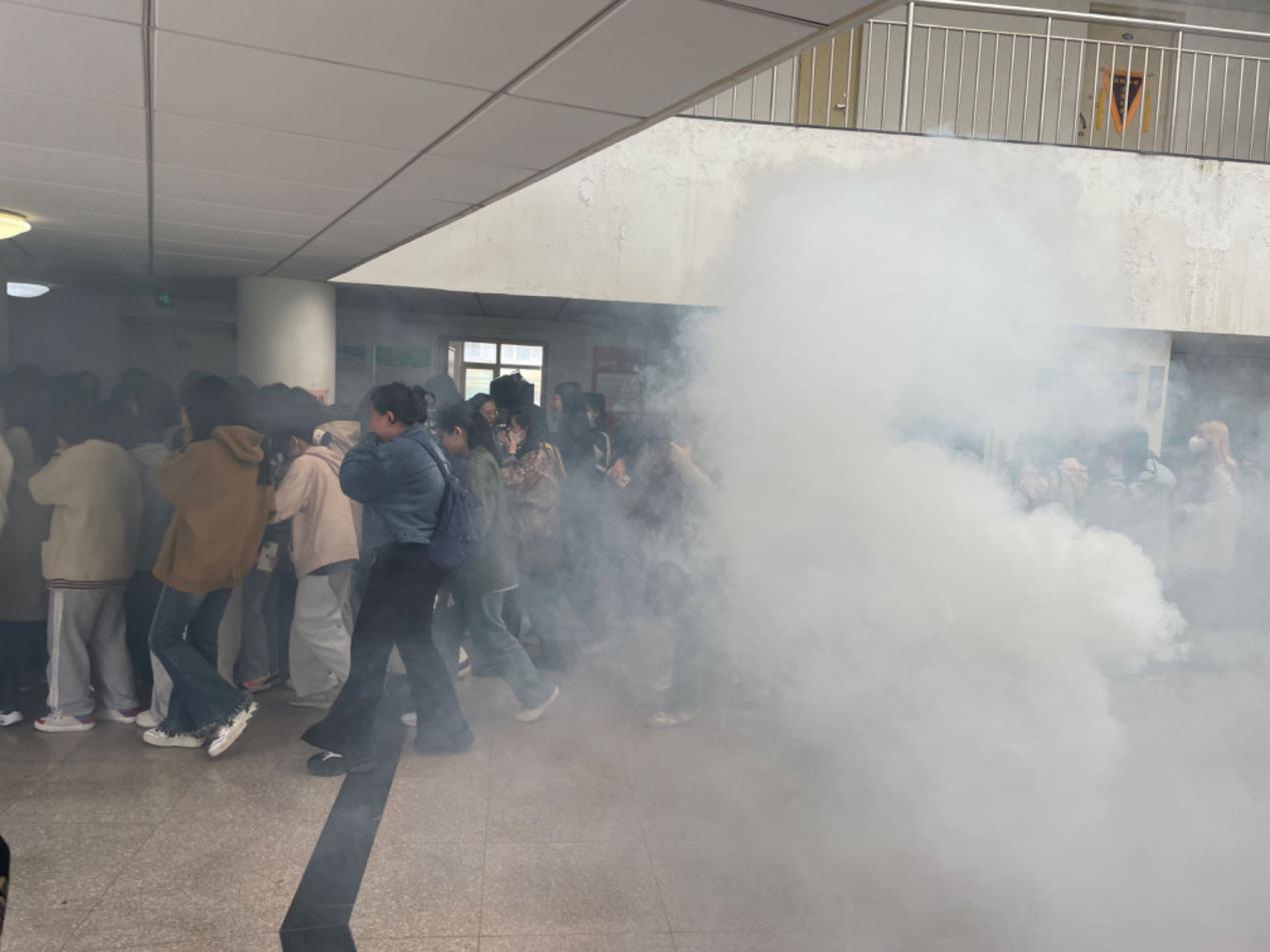 随着警报声响起,学校安全工作应急预案随即启动,各岗位人员迅速到位,在宿管员、学校值班老师的组织带领和各关键点疏散负责人的引导下,全体学生弯腰低姿,捂住口鼻,紧张有序地沿规定的撤离路线迅速撤离至指定地点。各班班长第一时间清点宿舍人数,确保全部人员安全撤离。
