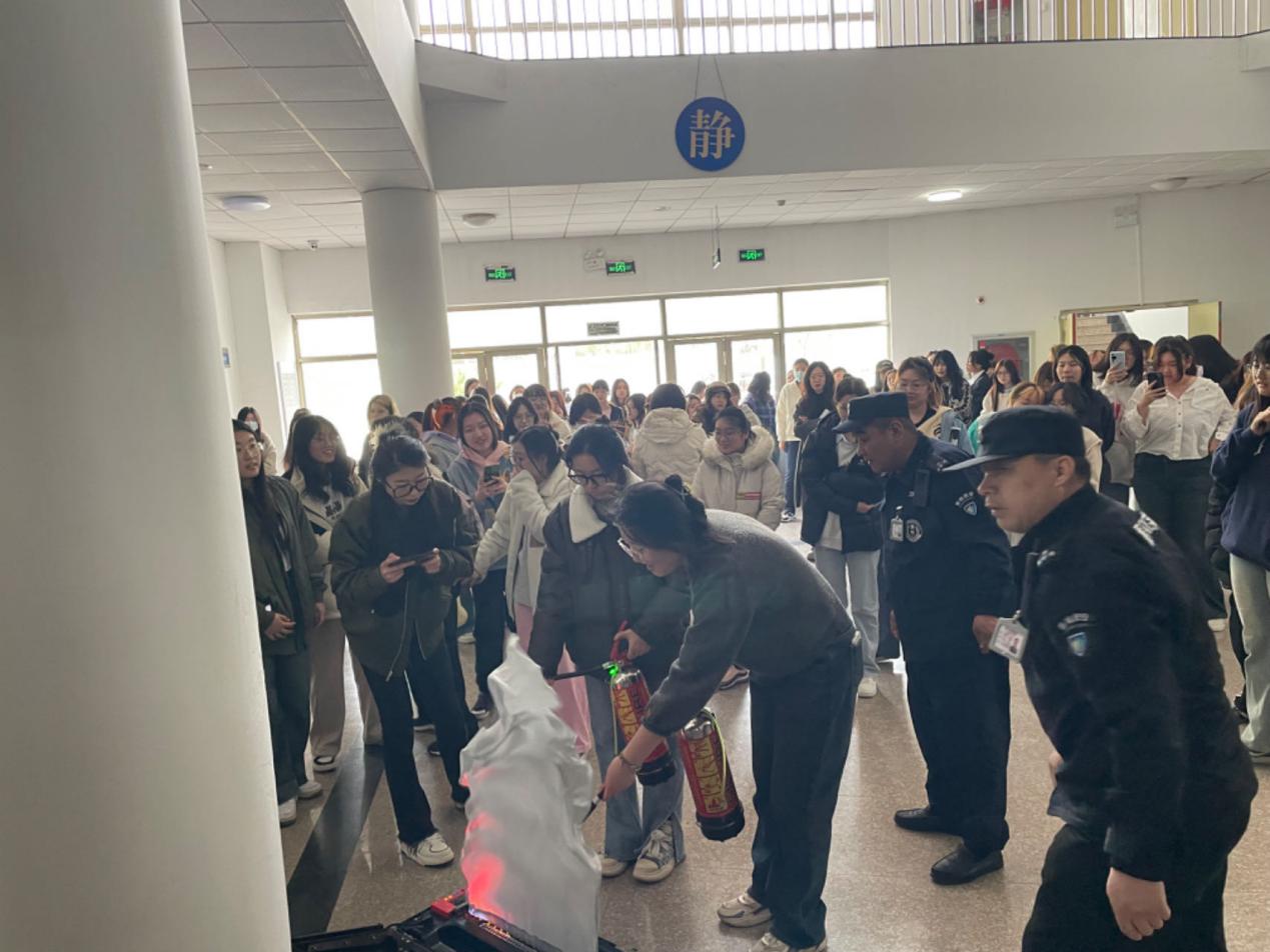 在灭火器使用培训环节,学校安全管理处老师为学生们讲解了消防安全知识、灭火器的种类以及适用范围等基本知识,重点讲解了手提式干粉灭火器的操作要领和注意事项,并现场演示了正确使用方法,同时,指导多名同学轮流现场操作。