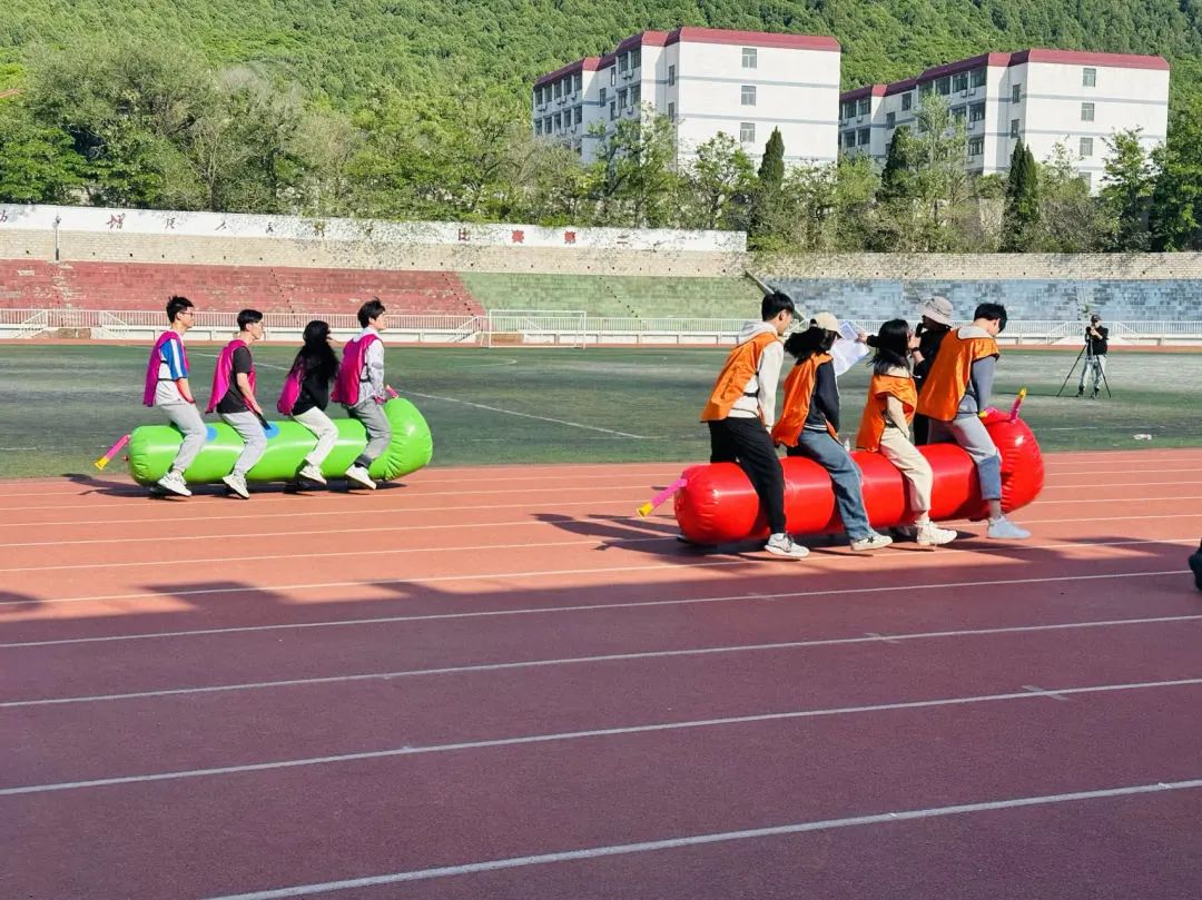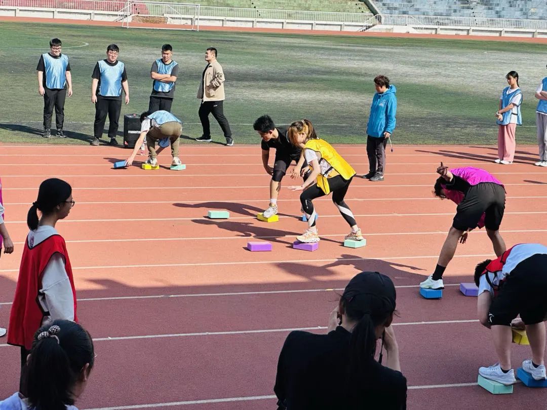学院范瑞雪副书记致开幕辞,运动员代表与裁判员代表进行宣誓,2022级出国留学项目和2021级职业教育项目近百名学生参加了趣味比赛活动。在长达四个小时的活动中,同学们按团队分组参加了包括团队战鼓、不倒森林、摸石过河、运转乾坤、毛毛虫竞速和力拔山河等六项比赛。比赛中各团队同学齐心协力、勇往直前、战意高昂,展现了青年人应有的激情与担当。比赛场上精彩纷呈,加油声、喝彩声、掌声此起彼伏,处处洋溢着青春的活力,运动场变成了欢乐的海洋。范瑞雪副书记与辅导员、班主任为获得一、二、三等奖的团队一一颁奖,祝贺同学们取得的来之不易的成绩,鼓励同学们再接再厉、勇于拼搏、永不言弃。