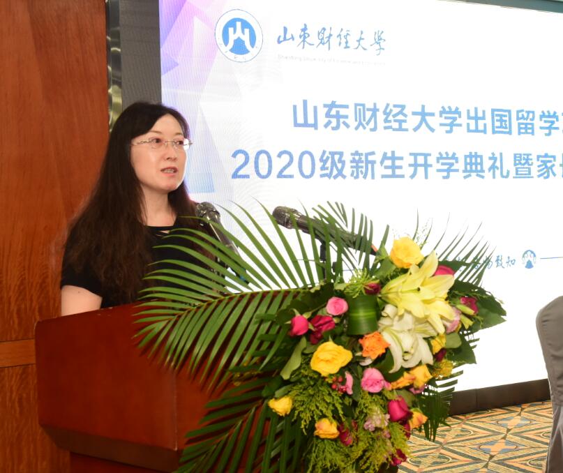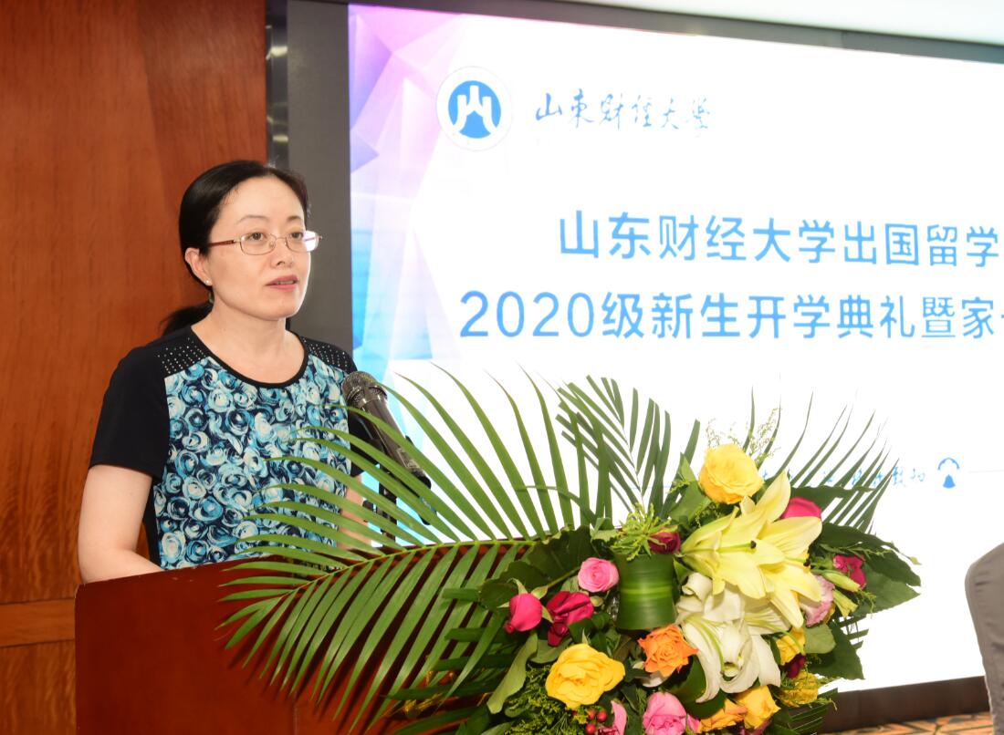 陈晓兰在致辞中介绍了学校办学的基本情况,尤其是学校国际化办学方面的基本情况,以及“1+3”本科班、“本升硕”、“专升硕”等多种形式出国留学项目的办学情况。她希望同学们秉承“克明峻德 格物致知”的校训,珍惜来之不易的学习机会,珍惜在财大学习的美好时光,坚定理想信念,厚植家国情怀;严以律己、勤学苦练;学有所成,前程似锦。
